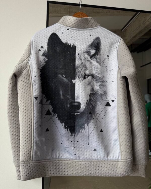 Nugaros dalį puošia spalvingas piešinys, kuris išsiskiria drąsiomis ir ekspresyviomis spalvų dėmėmis. Šis dizainas suteikia džemperiui unikalumo bei išskirtinumo, puikiai atkreipiantis dėmesį.