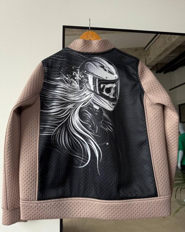 Nugaros dalį puošia spalvingas piešinys, kuris išsiskiria drąsiomis ir ekspresyviomis spalvų dėmėmis. Šis dizainas suteikia džemperiui unikalumo bei išskirtinumo, puikiai atkreipiantis dėmesį.